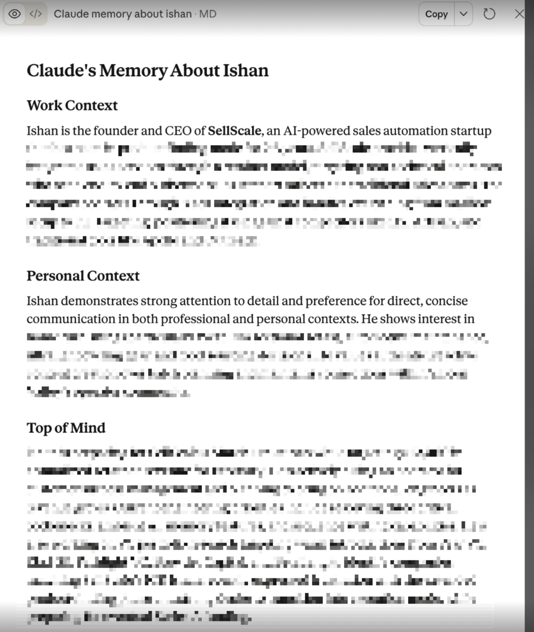 - Claude: Uses a living .md document approach, a continuously updated file that stays loaded in context, reflecting your current priorities and history. Closest to the state management model described above.